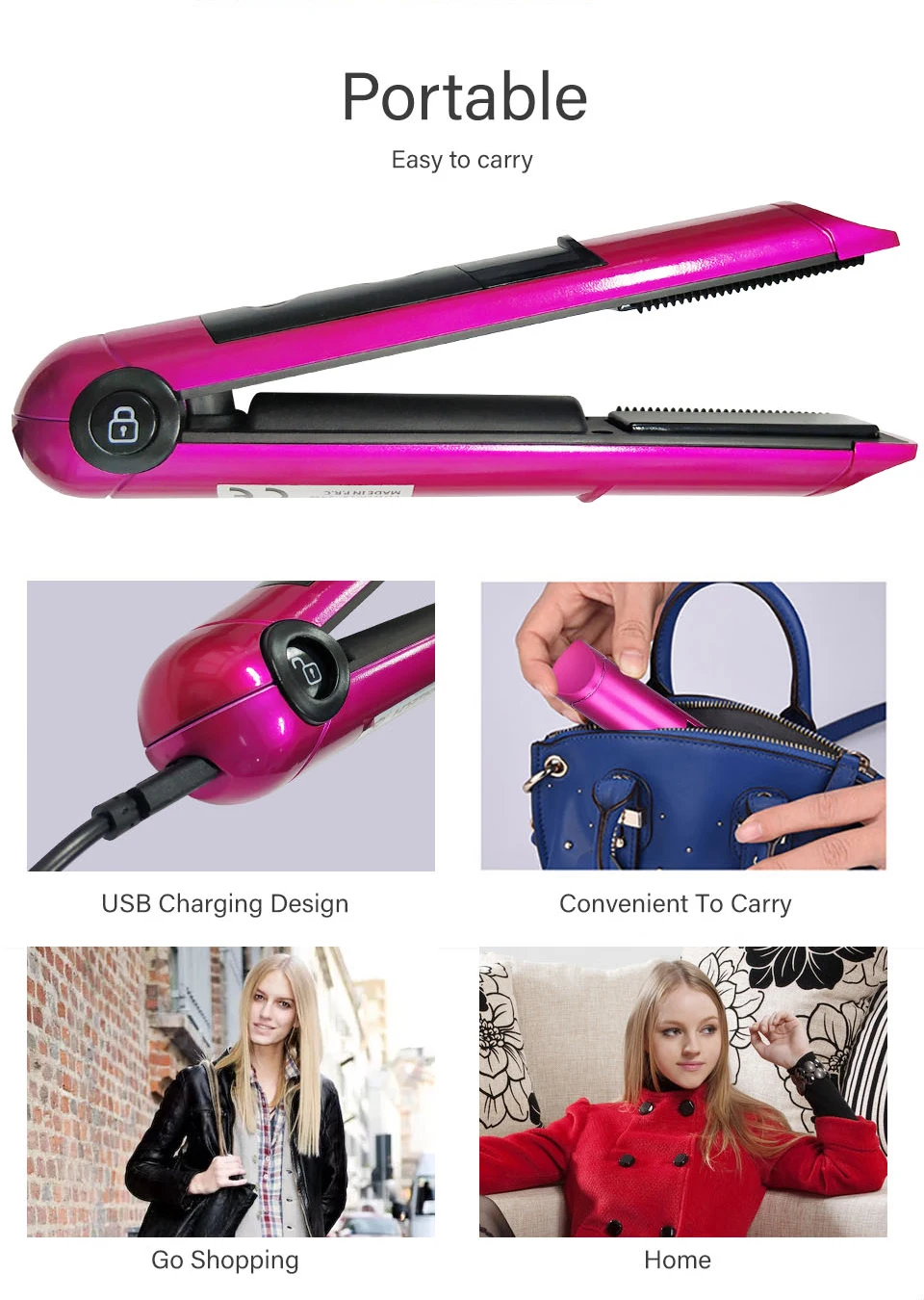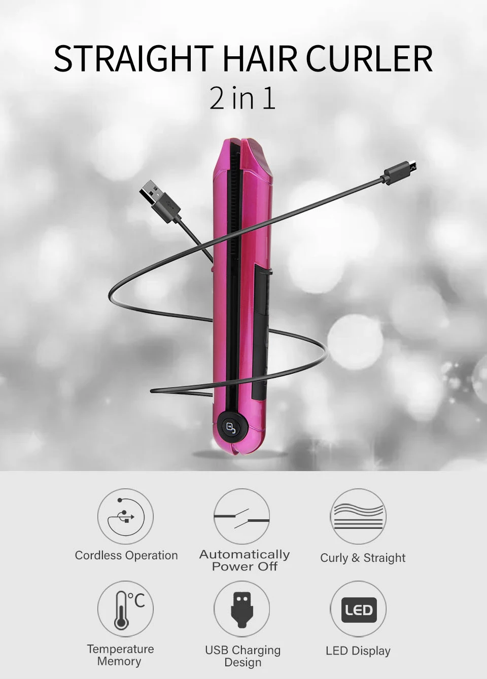 2 in 1 USB Rechargeable Hair Straightener