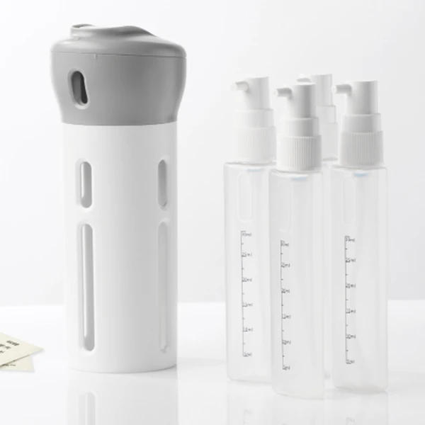 4 in 1 travel bottle set has a unique 4-In-1 design. With 4 refillable travel bottles in one case that is easy to store and carry anywhere.