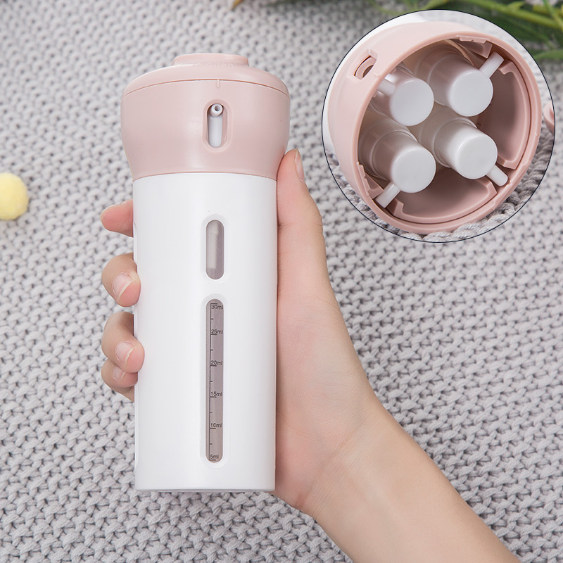 Switch between each bottle by simply rotating the top and just a single press to spray. Travel Mate 4-In-1 Bottle Set has a lightweight and cute design is easy to fill and dispense, very handy.