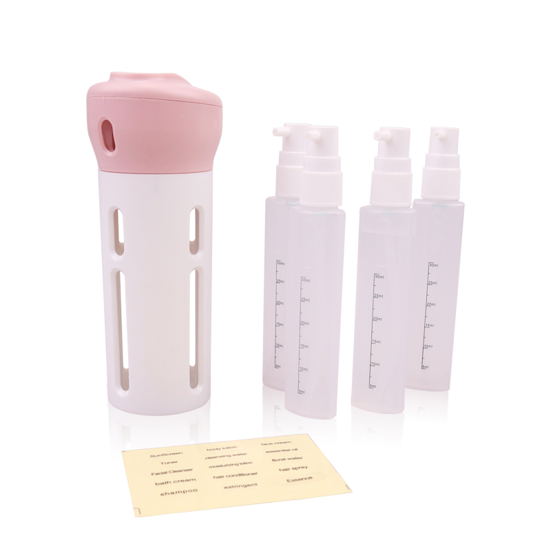4 in 1 travel bottle set has a unique 4-In-1 design. With 4 refillable travel bottles in one case that is easy to store and carry anywhere.