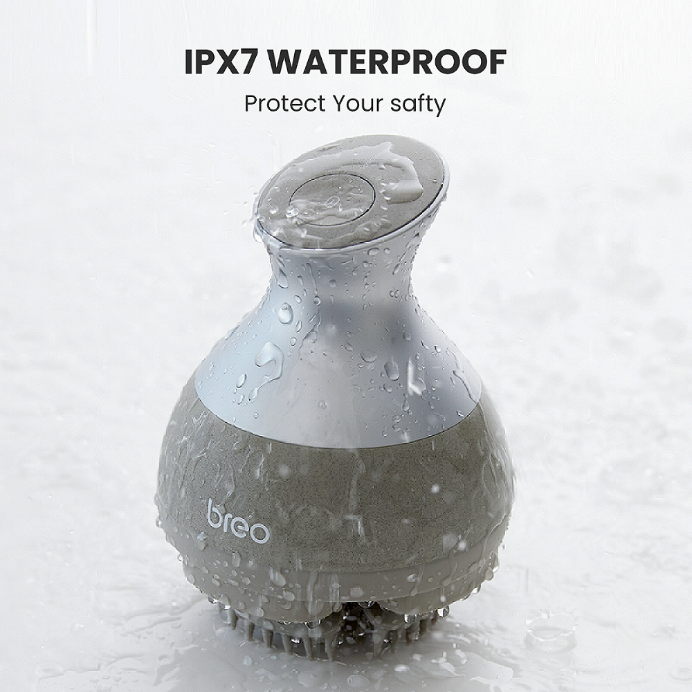 The scalp is waterproof; so it can be used with wet hands and hair. When not in use, it is recommended to be placed on its base, which helps to keep the massager clean and sanitary. And the kneading heads are removable so cleaning is easy.