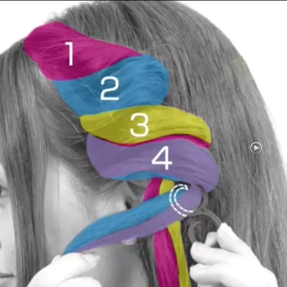 Secure the Braiding tool in hair using the clip Taking small sections of hair at a time – twist and tuck hair into the loops to secure Continue this step until you have achieved your desired look.