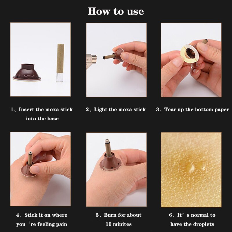 Note: Please use in a ventilated environment since it is not a smokeless type. After moxibustion, drink hot water and help eliminate body waste.