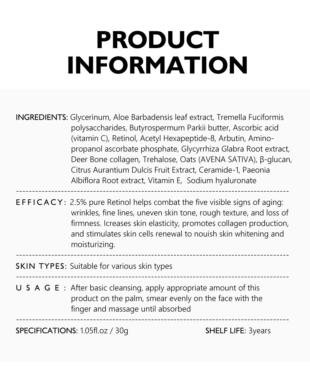 [Main ingredients]:2.5% Retinol &Vitamin C &Vitamin E