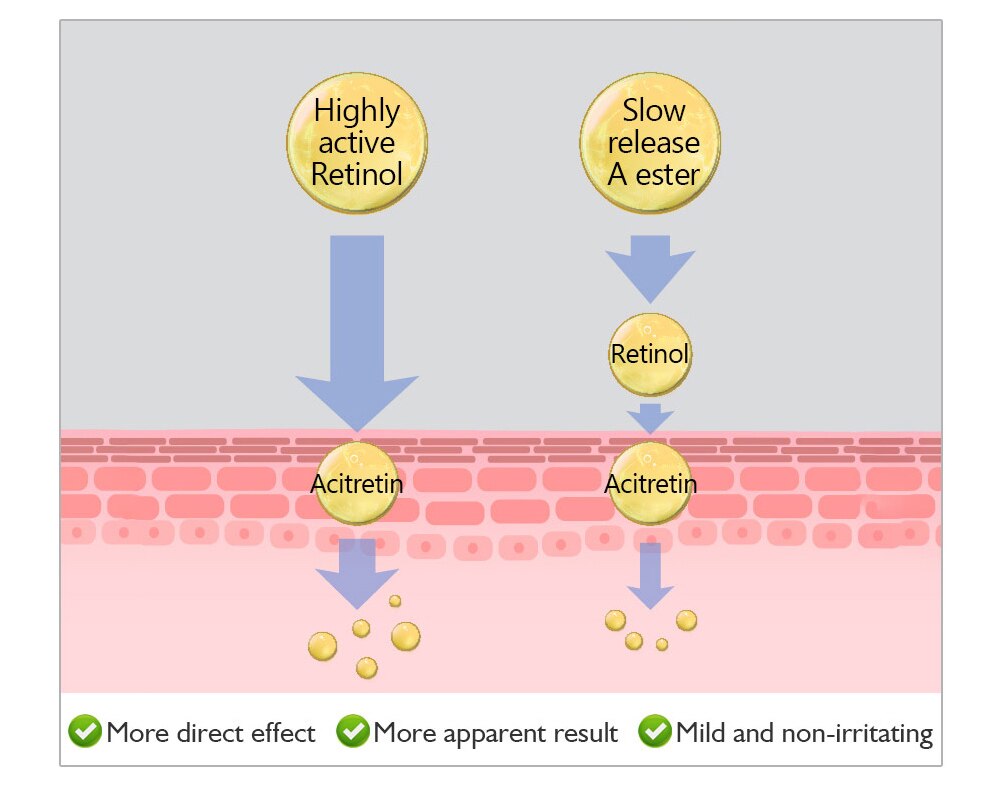 The Vitamin A Retinol is generally recognized by Academe as an golden key for anti-aging, effectively stimulating collagen production and for helping to reduce fine lines and improve skin roughness
