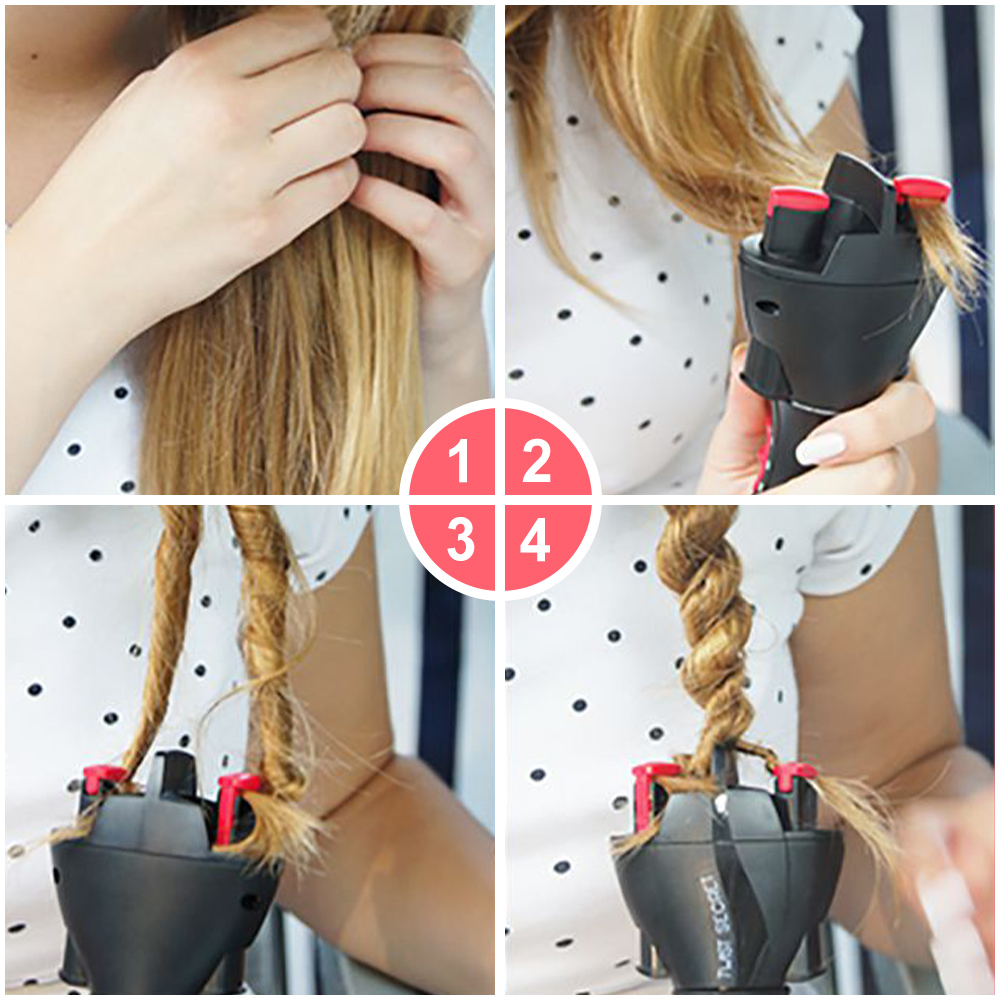 【one-click control】Very easy and comfortable to use, one-click control, just need a few simple steps then you can create your own hairstyle. Powered by 2*AA batteries(not included), providing you continuous power to twist your hair.