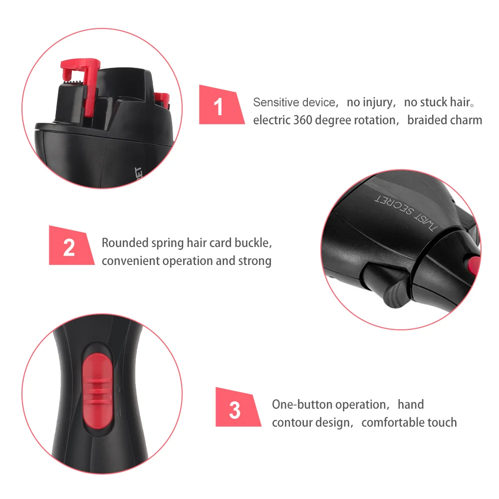 User-friendly design, one-button control, comfortable touch, and contour design of the hand, make you beautiful every day. Fun and fashion for all ages, spinning can help create beautiful hairstyles.