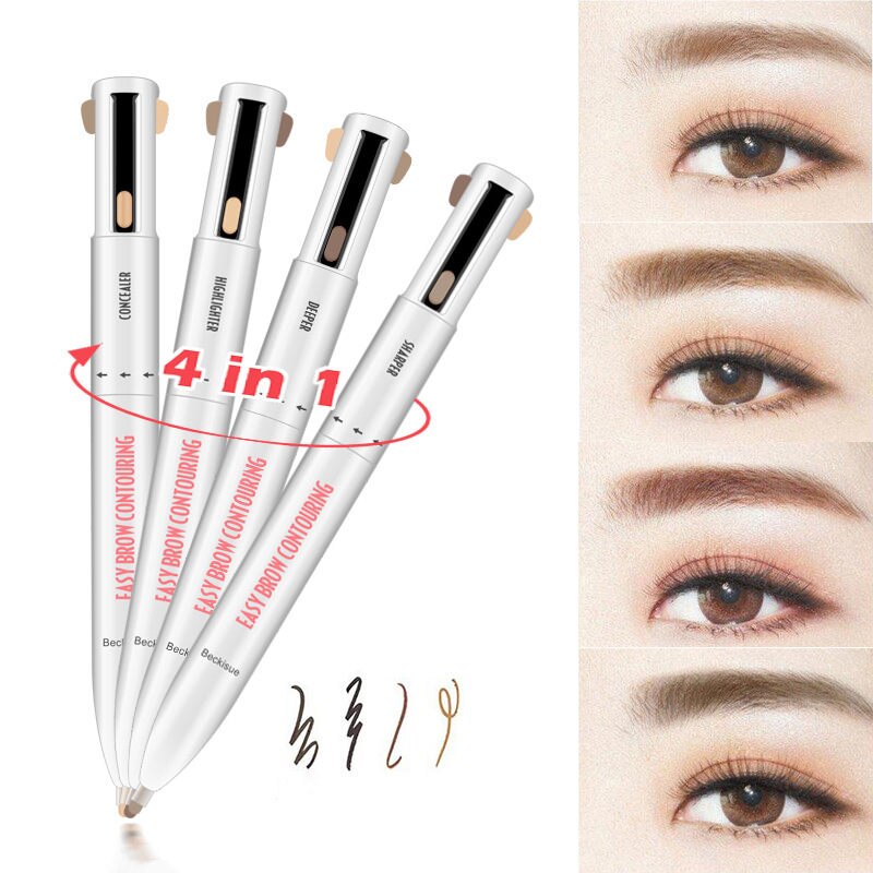 Do your eyebrows like a pro! Define & highlight your eyebrows with this 4-in-1 brow contour and highlight pen. Our multi-tasking brow contour and highlight pen features a lighter eyebrow shade, deeper eyebrow shade, edge definer, and arch highlighter. Now, you create clean, shaped brows with depth & dimension, all you have to do is click and twist. Turn shapeless, flat brows into defined, contoured brows in an instant. And in case of any retouch, you can have it accessible anytime anywhere without bringing a bulky cosmetic bag!