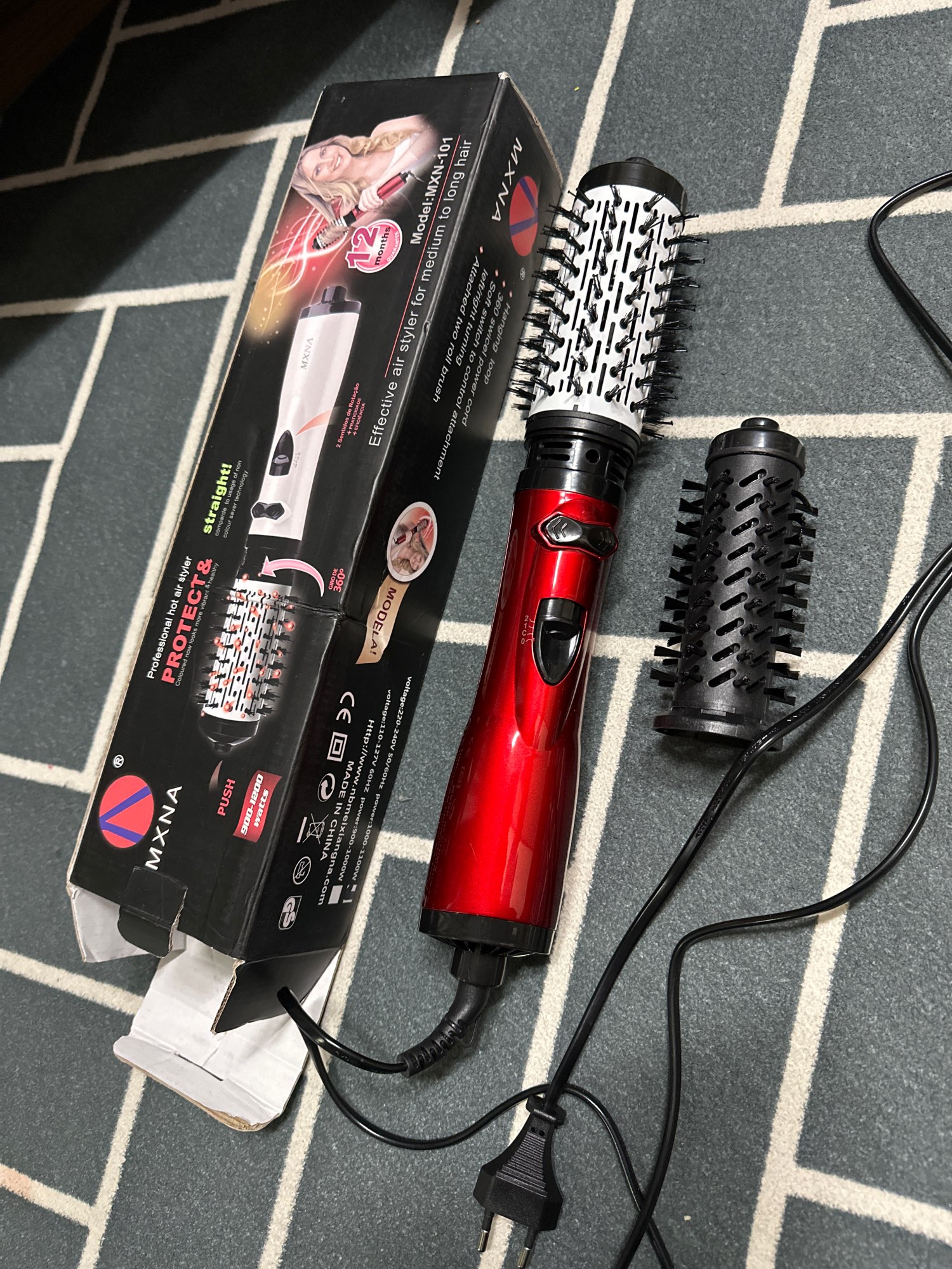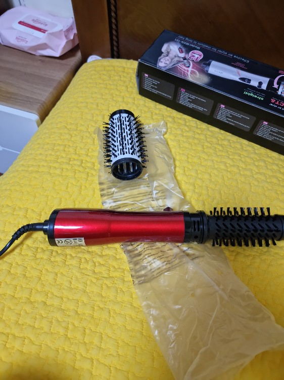 The hairdryer came, well-packed :) like the functions. Powerful. Brushes seem large .. the one that is smaller, consists only of hard villi, bigger which is mixed with plastic villi. Everything turns and looks quite dignified.