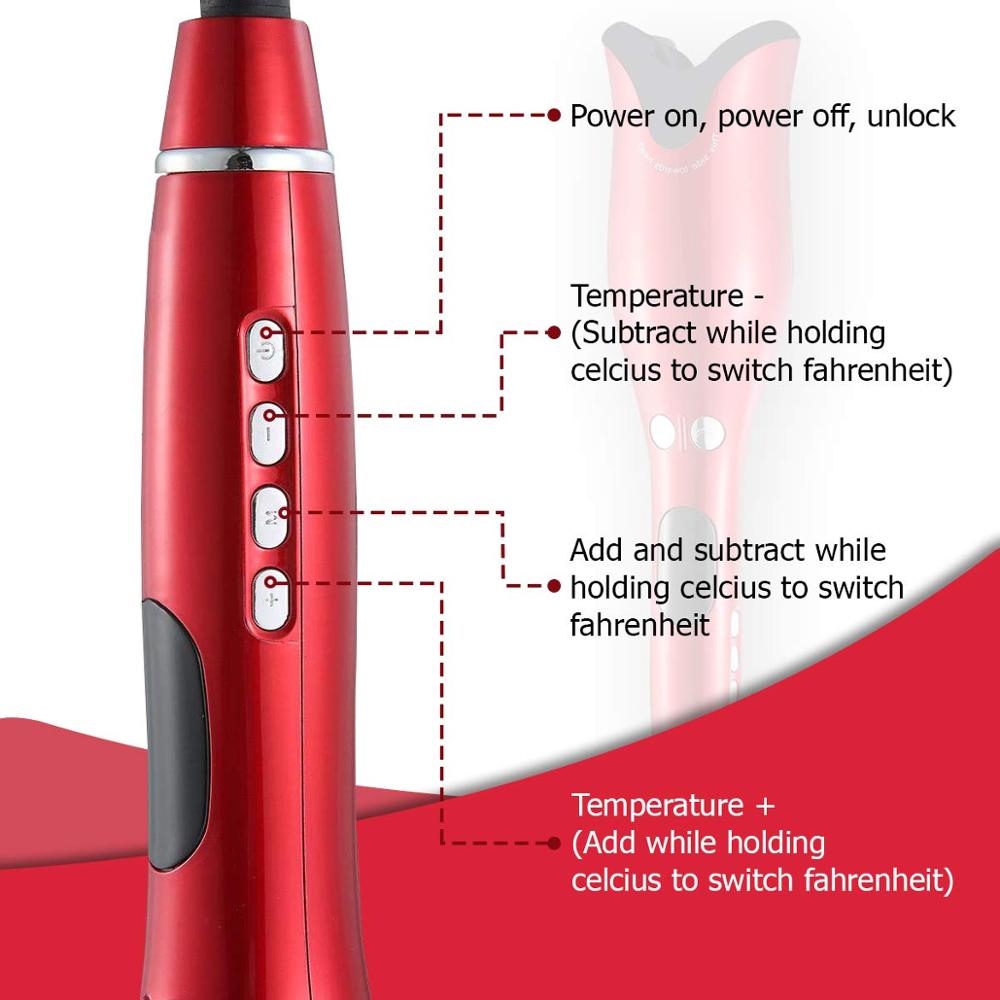 2. the spin n curler display is turned ON and OFF by pushing the Power button on the handle, the display will light up to show that the appliance on