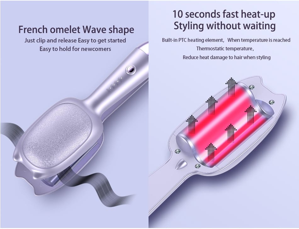 **4. Rapid Heating:** Say goodbye to waiting around. The French Egg Roll Curling Iron boasts rapid heating technology, allowing it to reach your desired temperature in mere seconds. Get ready to style your hair quickly and efficiently, whether you’re on a tight morning schedule or preparing for a spontaneous event.