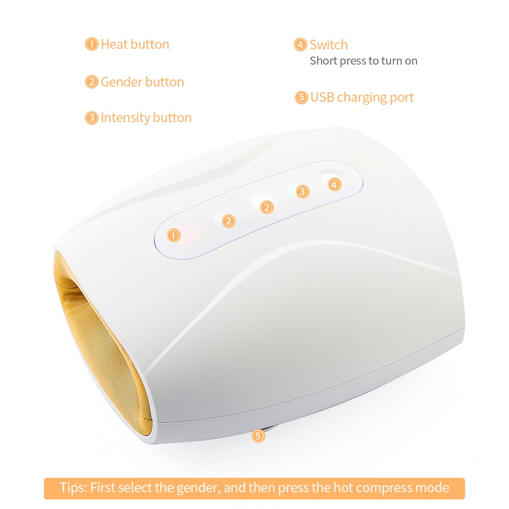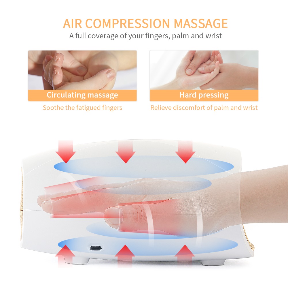 1. The Hand Massager targets the pressure points in your hand with its built-in air compression and nodes to help soothe your entire hand and fingers. (3 Levels of intensity)