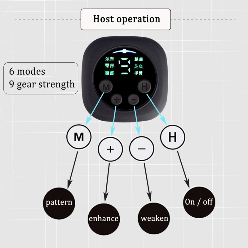 3. The host has six massage modes to switch, which are kneading, thumping, acupuncture, massage, acupressure, pulse.