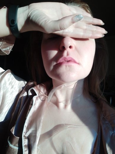 Got everything intact. I was afraid to immediately do it on my face, because from ordinary take-ups I have irritation. I made on the chest and neck, there is no irritation, but they. Do not hold, knock down and peel off. Photo In the morning.