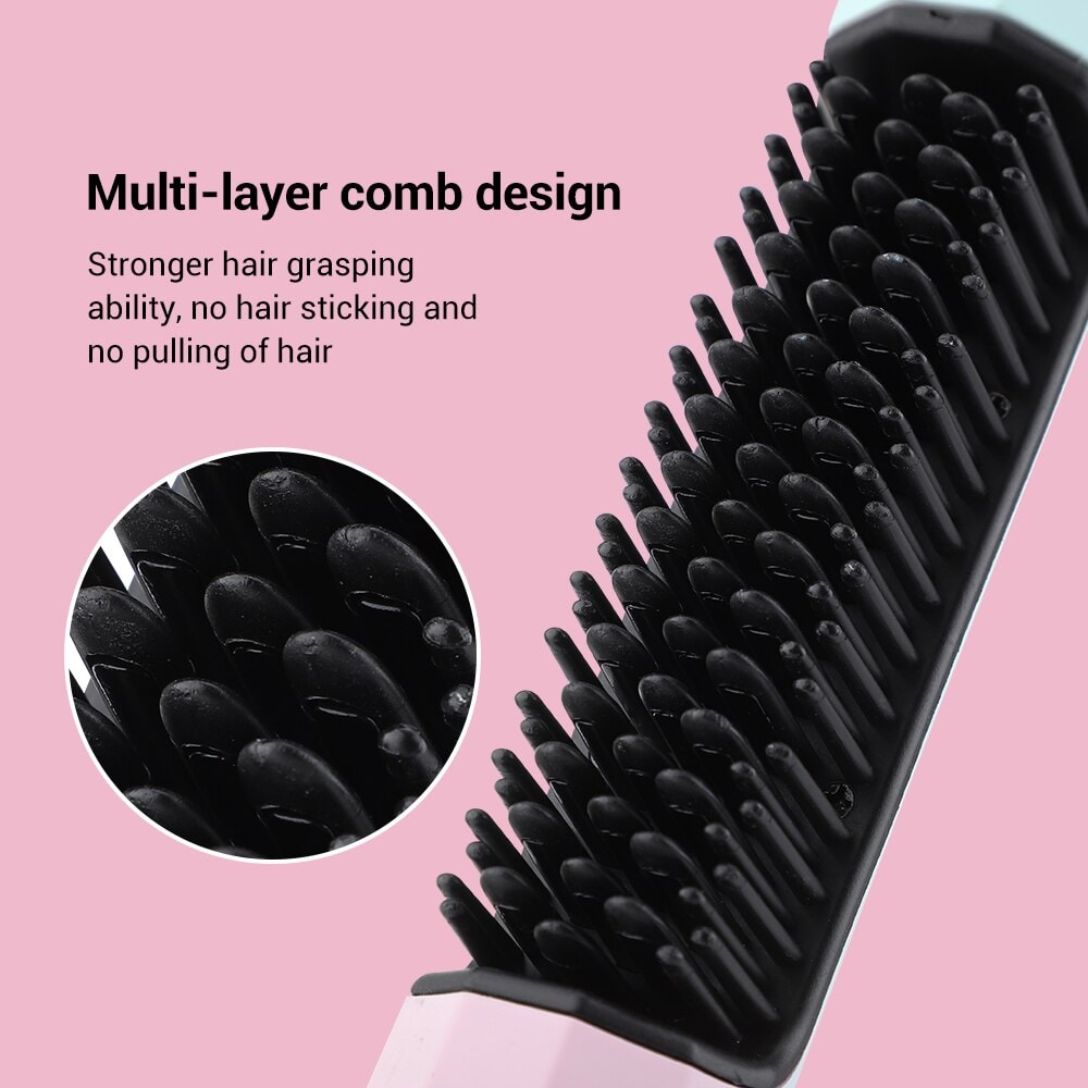 1. This cordless straightening brush quickly detangles messy hair, smooths frizz, and helps you easily tackle all types of hair problems, leaving your hair shiny and smooth.