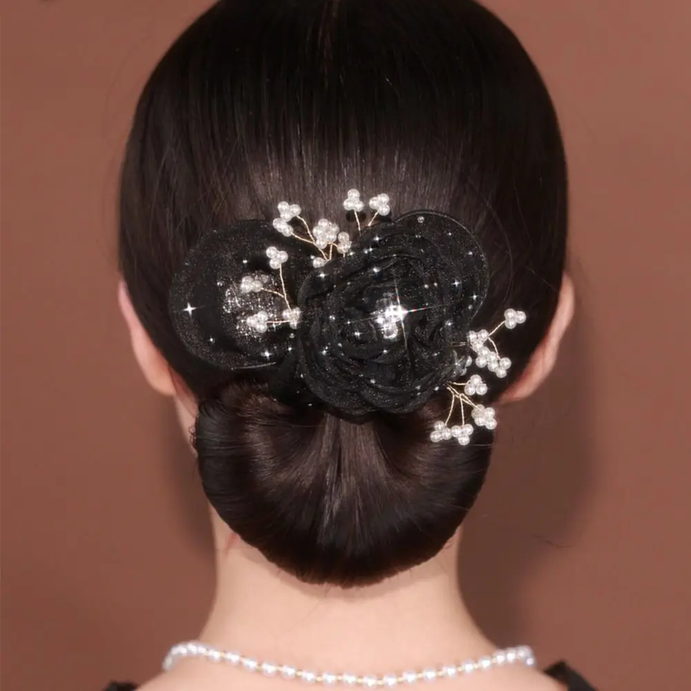 High Quality Material: The flower bun clip is made of high quality fabric, comfortable to wear, reusable, will not harm your hair and can be used for a long time.