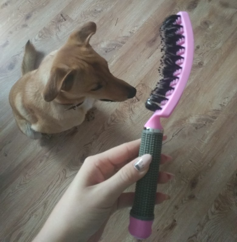 The goods came to Ukraine. Brush cool corresponds to the description. Presented to mom, she really likes, rare hair.