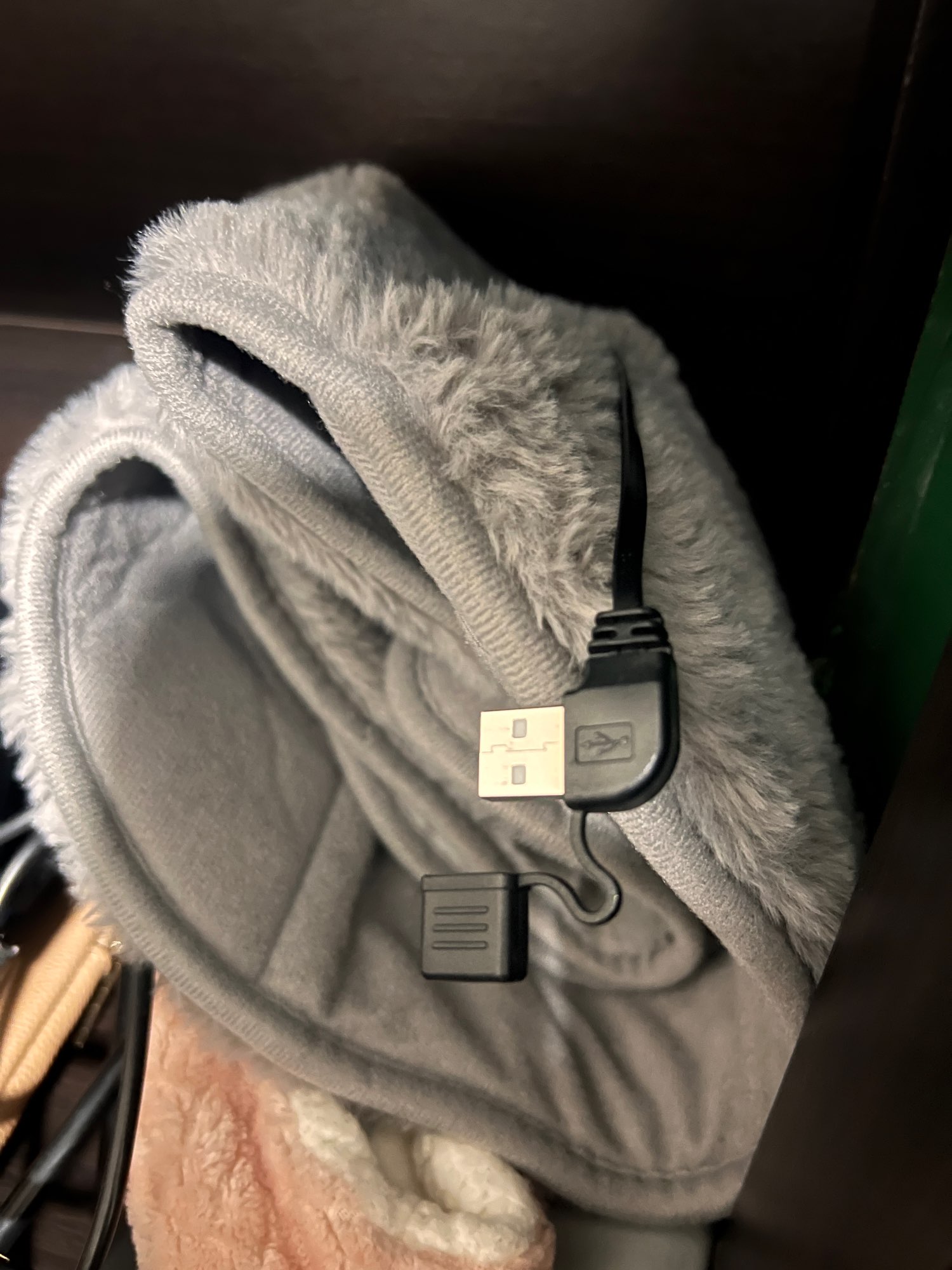 Comfortable, cozy, soft heating pad. Works from the mains with phone charging, or from a charged power bank, very useful for winter.