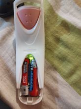 Arrived very fast use two AAA triple batteries, and it is very light yet it works!