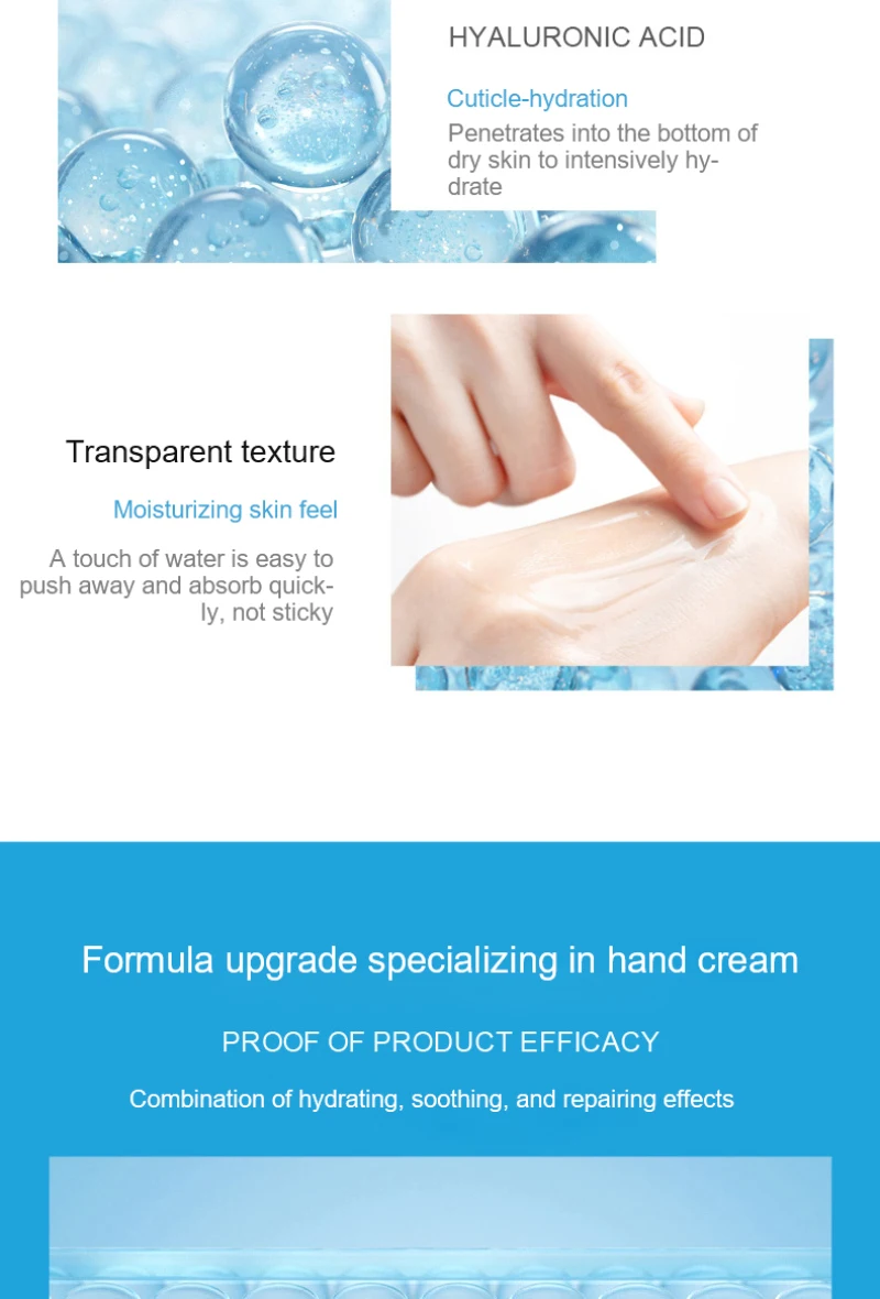 【Efficient and 】Transparent texture, soft and tender skin feel a touch of easy to push and absorb. Moisturizing hand cream can be used on hands, elbows, and feet.