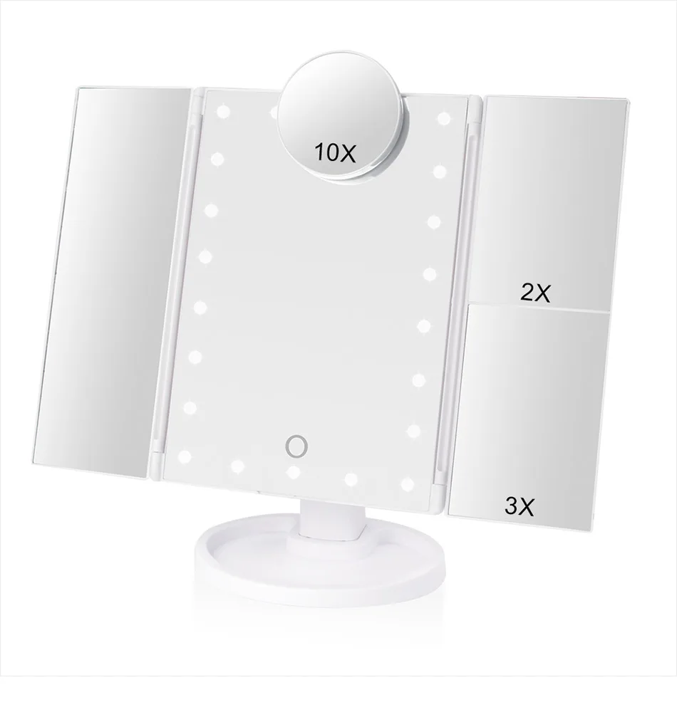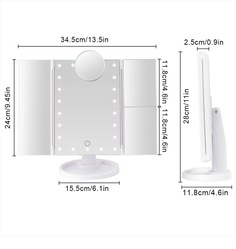 Firmly press the circle on the front of the mirror, the lights will be illuminated