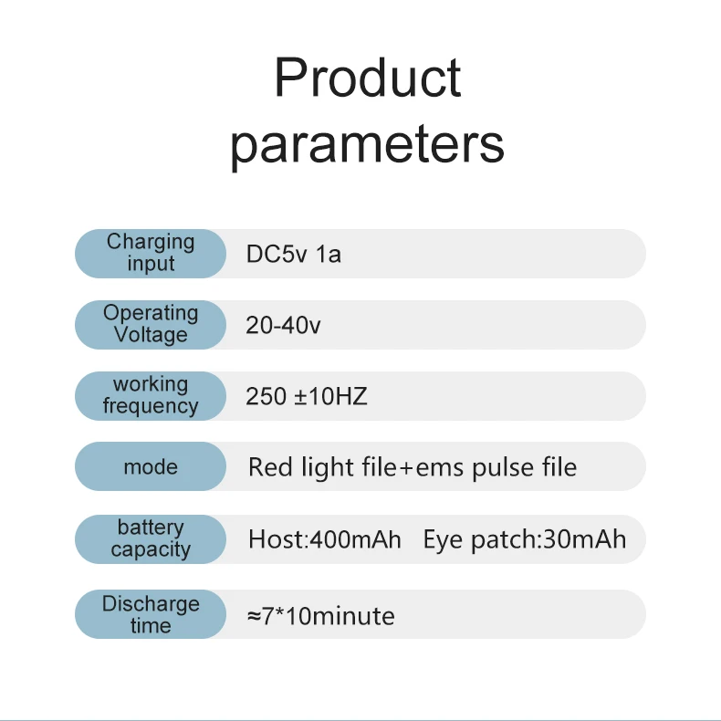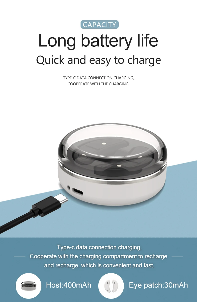2. The host battery capacity is 400mAh, and the eye patch battery capacity is 30mAh.