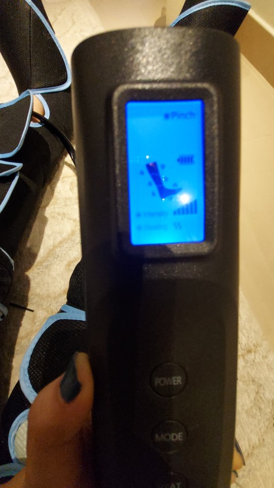 Class! Perfectly massage and do not need to cling to the outlet. Completeness is regulated by Velcro. With an increase of 1,7 m. I get almost where my legs grow from. Perfectly heats your knees. Turns on only when you press more than 3 seconds, otherwise just shows the battery charge. Brought to the house, everything is neatly packed, charged for full volume. Very satisfied with the purchase. Thank you store.