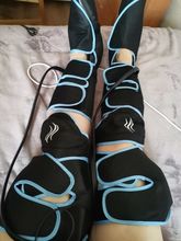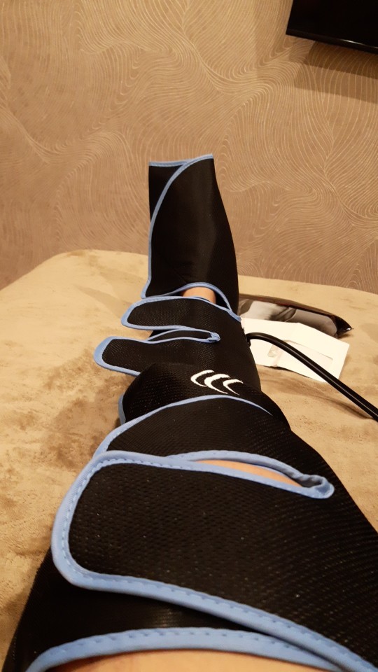 The parcel came a little later than the deadline, was supposed to deliver the courier, but she lay in the mail, took herself. About the device: a cool thing, sewn very high quality, the material is dense, everything is smooth and neat, the battery was charged completely, the remote works, someone wrote that the remote that at first I could not, too, but by the method of the rear I realized that it is turned on by a long press and all business! The massage is excellent, on the smallest it compresses well. Three types of massage, including pressotherapy is cool, the price is fire, and now on sale will be even cheaper, thank you very much to the store for the quality, delivery and price Recommend!!!