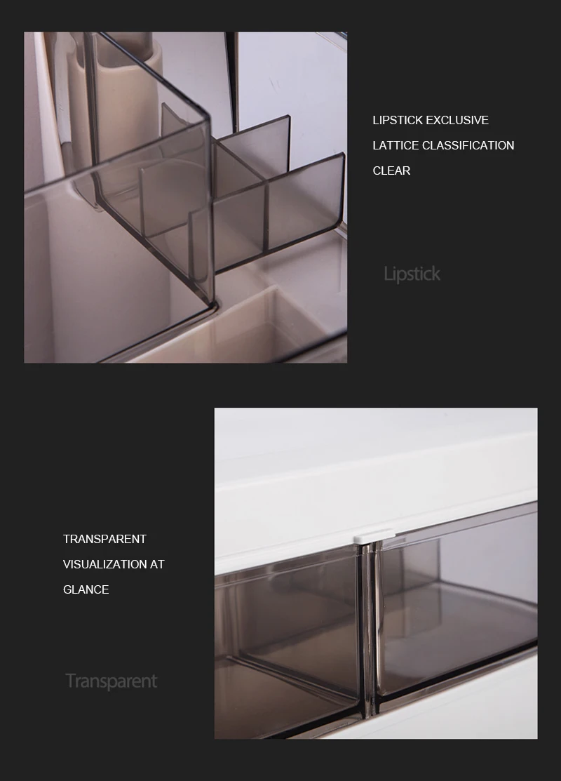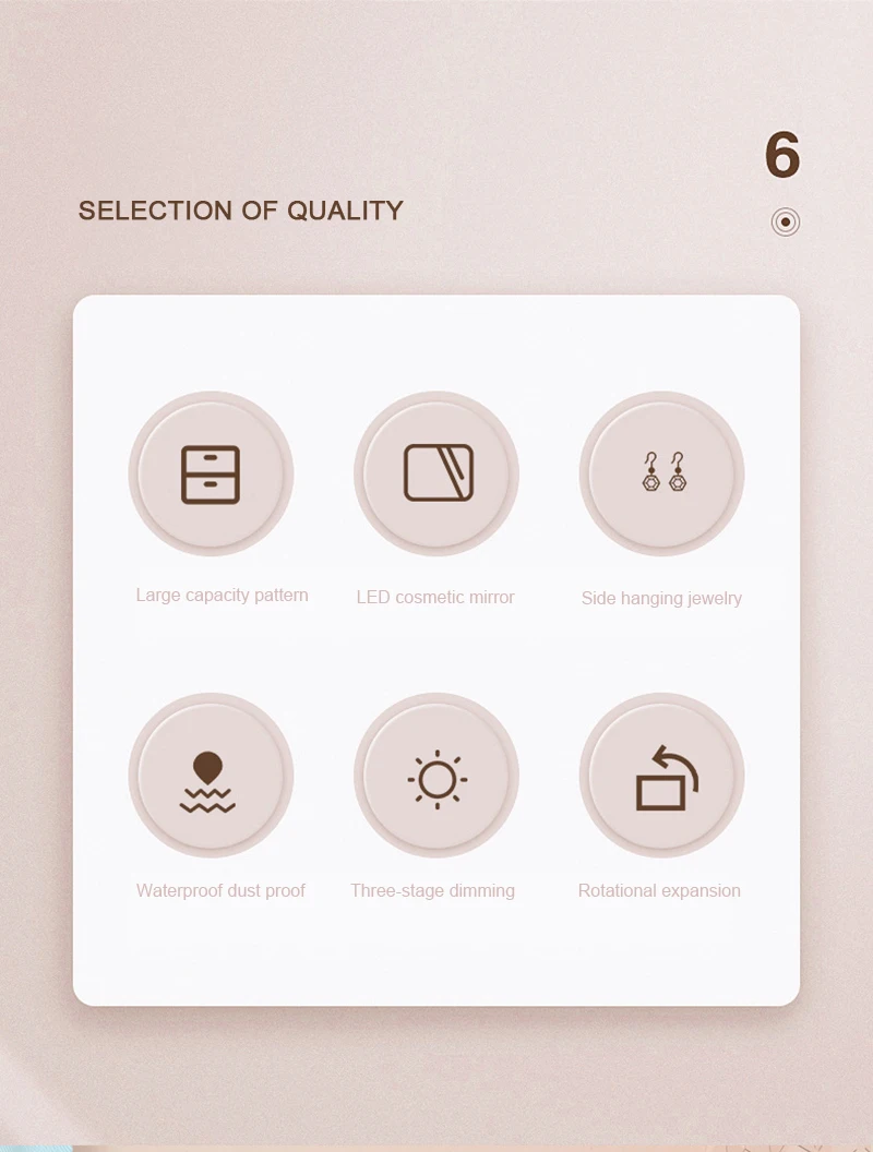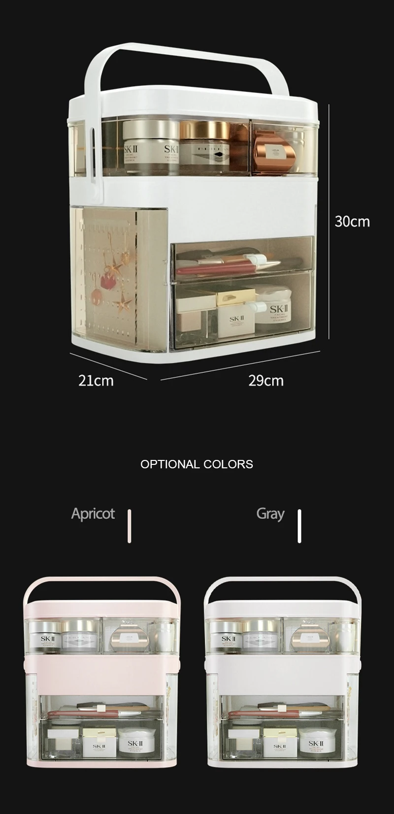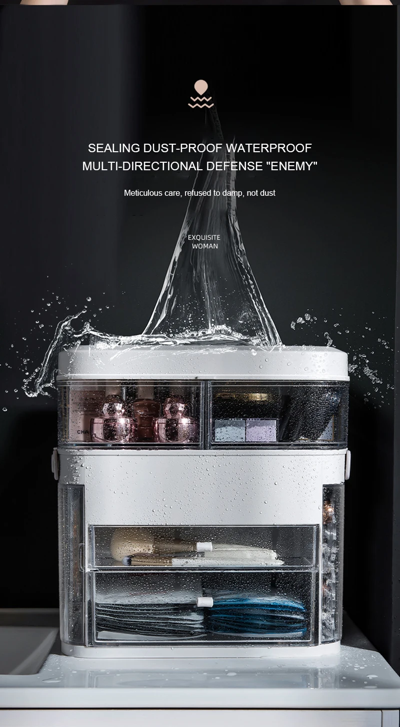 Well, not anymore. Introducing the Makeup organizer with mirror that you can take any time anywhere! The rotating design, and the drawers equipped with silicone handles, make it become a fully open and barrier-free highly efficient storage assistant, greatly save your precious time. In addition to that, an HD mirror free to adjust the light according to demand, skincare makeup is easier. The makeup organizer with mirror has good air tightness, so it is dust-proof and waterproof, can be used in washing rooms, bathrooms, bedrooms. It stands out with its stylish, innovative, and neat appearance, bringing elegant charm to every fashionable woman. Buy it now!