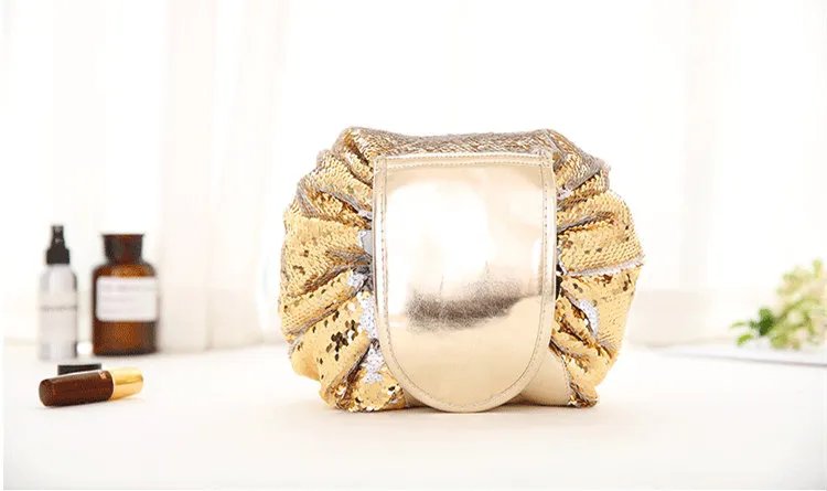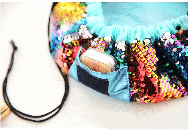Do you have difficulty wrapping all your cosmetics and skincare products in a sachet for a long journey? Do you find the patterns of ordinary toiletry bags uncreative and boring? Then you absolutely need this Mermaid Sequin Cosmetic Bag with Drawstring Closure! Portable size with huge capacity. Beautiful look and very easy to use. A must-have for every lady and every girl!