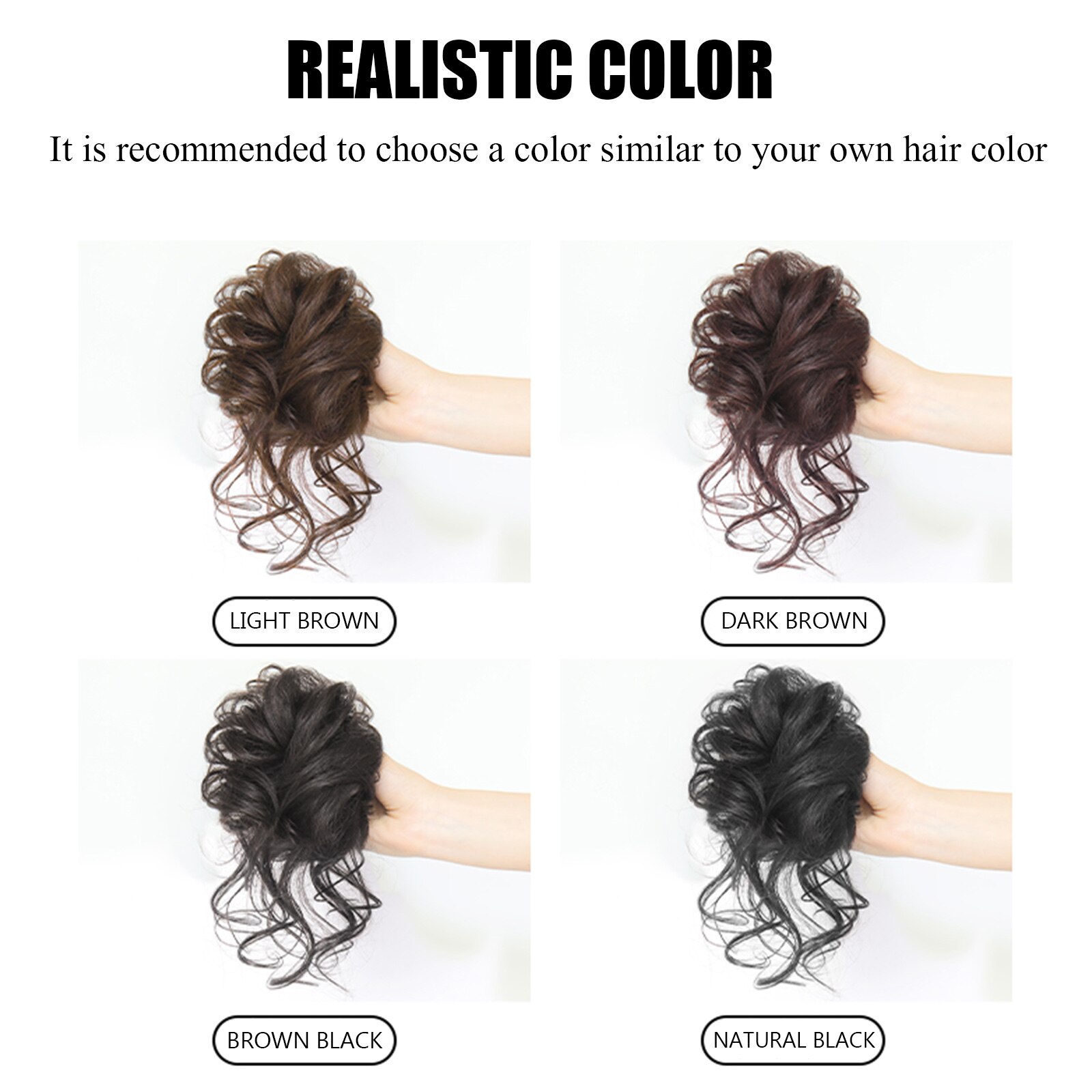 You do not have to spend too much time creating pleasing hairstyles with these Messy Curly Hair Bun Scrunchie Extensions, refresh your look and give your hair volume in seconds!