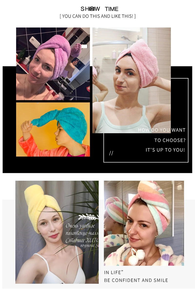 Super water-absorbent, fast-drying, time saver, drying your hair 100% naturally Microfiber Hair Tower! Electric hair blower no longer needed! Reduces the risk of split ends.
