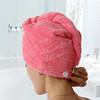 1. Bend to make your hair hang down, put on hair towel on top of head (the end with button)
