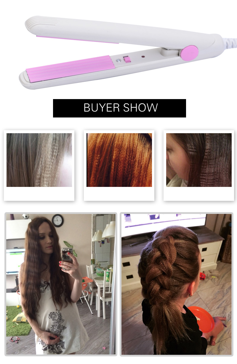 Do ordinary curling irons create too big curls for you? Are you looking for a more compact machine? Let’s try our mini electronic hair straightener. The product is made of plastic and tourmaline ceramic, it can easy to create perfect silky smooth straight hair or curly hair. The smart 190℃ temperature-keeping function can prevent your hair from getting overheat or your scalp from getting hurt. It can help to keep hair smooth and beautiful silky finish, keep your hairstyle all day long. Ceramic tourmaline plates enable smooth pulling motion without breaking or damaging hair. This mini hair curler helping you to create all kinds of styles of hairstyle anytime, anywhere, whether traveling or everyday use. It is a compact product that is easy to use and carry when travel. Buy it now!
