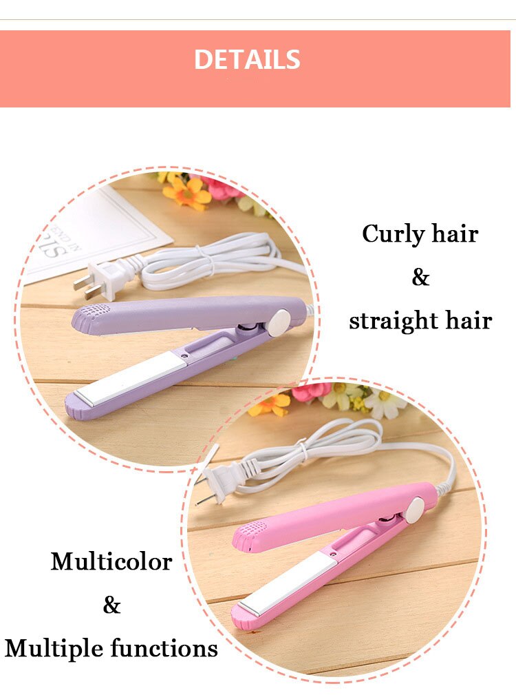 Do ordinary curling irons create too big curls for you? Are you looking for a more compact machine? Let’s try our mini electronic hair straightener. The product is made of plastic and tourmaline ceramic, it can easy to create perfect silky smooth straight hair or curly hair. The smart 190℃ temperature-keeping function can prevent your hair from getting overheat or your scalp from getting hurt. It can help to keep hair smooth and beautiful silky finish, keep your hairstyle all day long. Ceramic tourmaline plates enable smooth pulling motion without breaking or damaging hair. This mini hair curler helping you to create all kinds of styles of hairstyle anytime, anywhere, whether traveling or everyday use. It is a compact product that is easy to use and carry when travel. Buy it now!