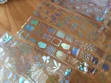 Everything is fine, even better than expected. Dimensions +-match. Drawings themselves are silver, with a holographic tint, damn, I really like it, not banal sets of flowers, but cool drawings. Well, as in the photo of the store. Some drawings repeat the ornament on the tiles for stamping which can be played perfectly. Or maybe everything, if you see it. Color also all holography. Pts pleased with dark blue, almost black. Satisfied