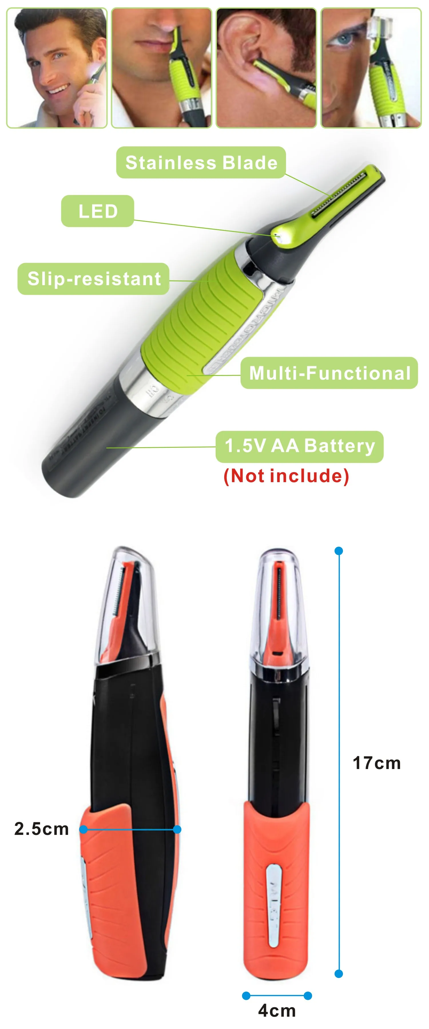 * Nose hair trimmer have with bright LED light allows you to shave in dim light to prevent hurting the nose or ears.