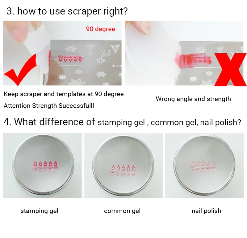 - Less guesswork – Jelly stamper that allows you to see where you stamp so you can accurately place nail art images on your fingernail.
