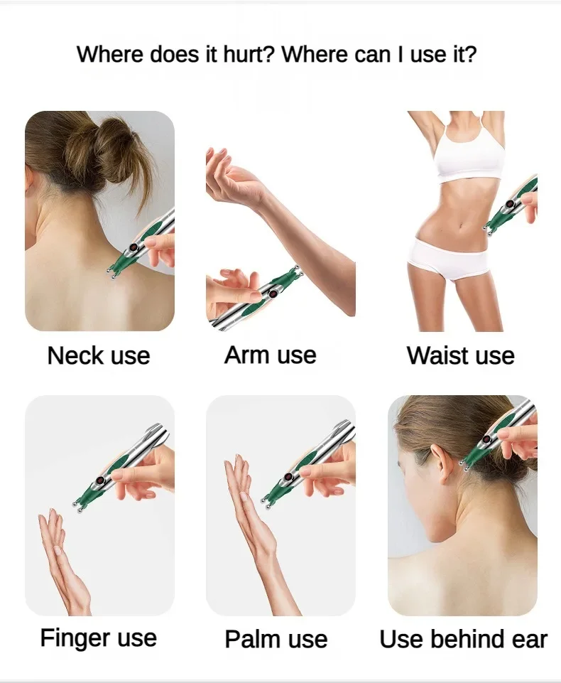 The Pain Relief Massager can be used on multiple sites, with pulsed massage to stimulate acupuncture points.