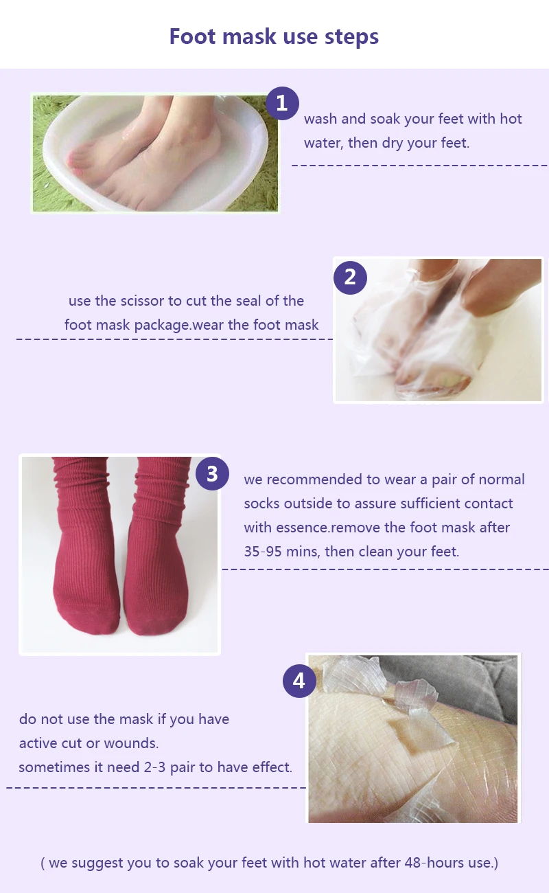 For better results, soak feet in warm water after 48 hours of applying the masks