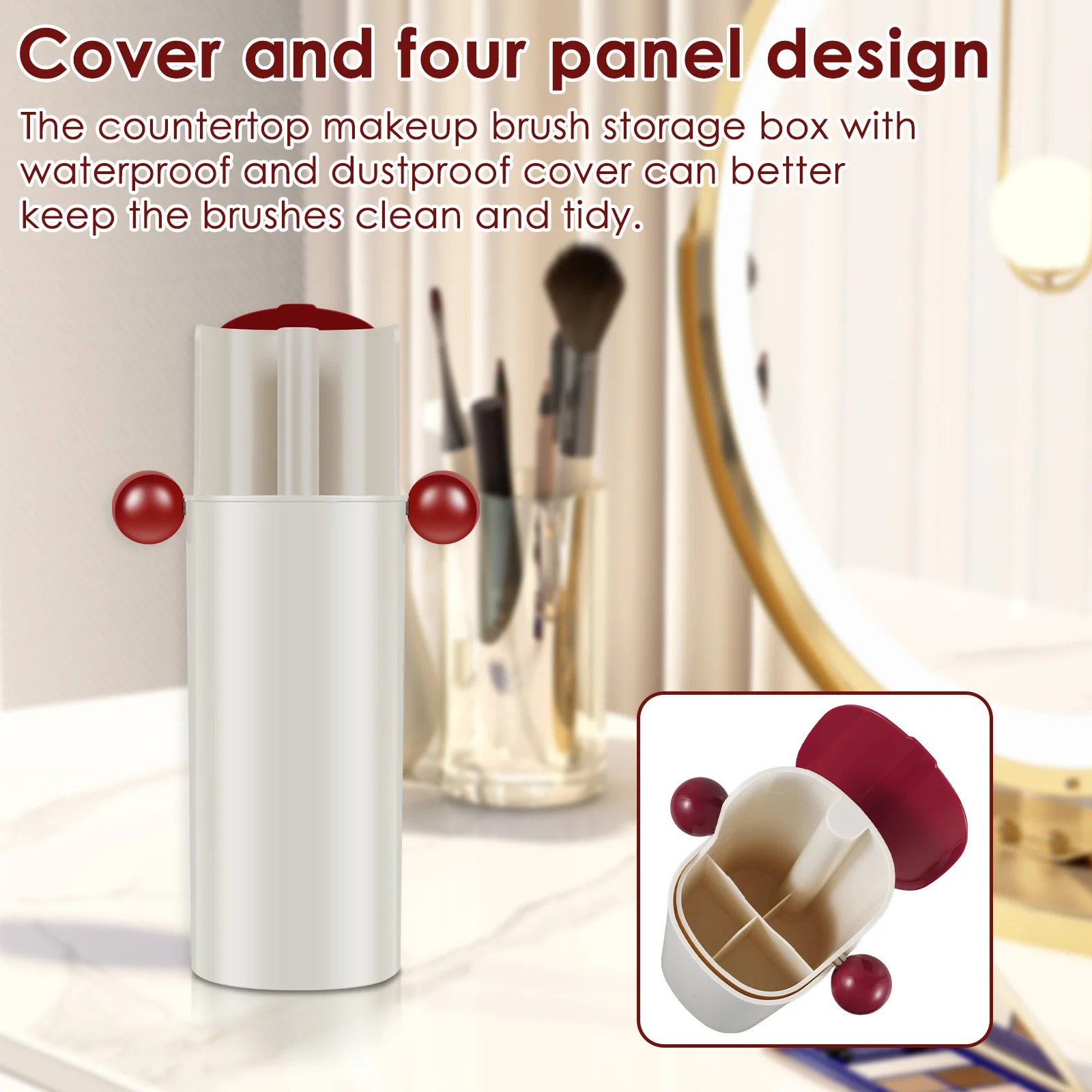[With Lid and 4 Compartments Design] The countertop makeup brush organizer with waterproof and dustproof lid can better keep your brushes clean and free from dust and pollutants, keep your makeup brushes neat and tidy. The base is designed with 4 slots of different heights and organized lengths, so that your makeup brushes can be categorized for storage and use, suitable for most different sizes of makeup brushes and eyebrow pencils