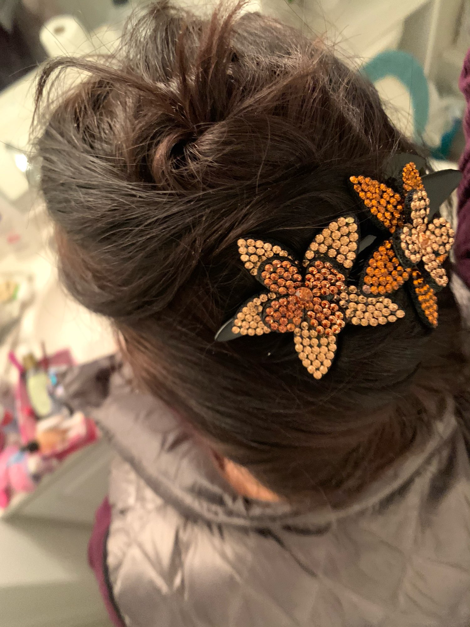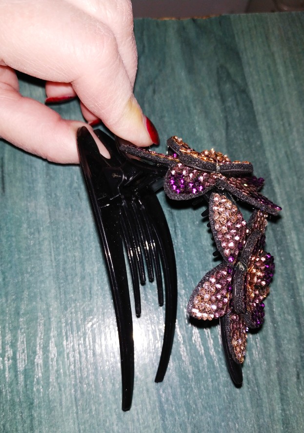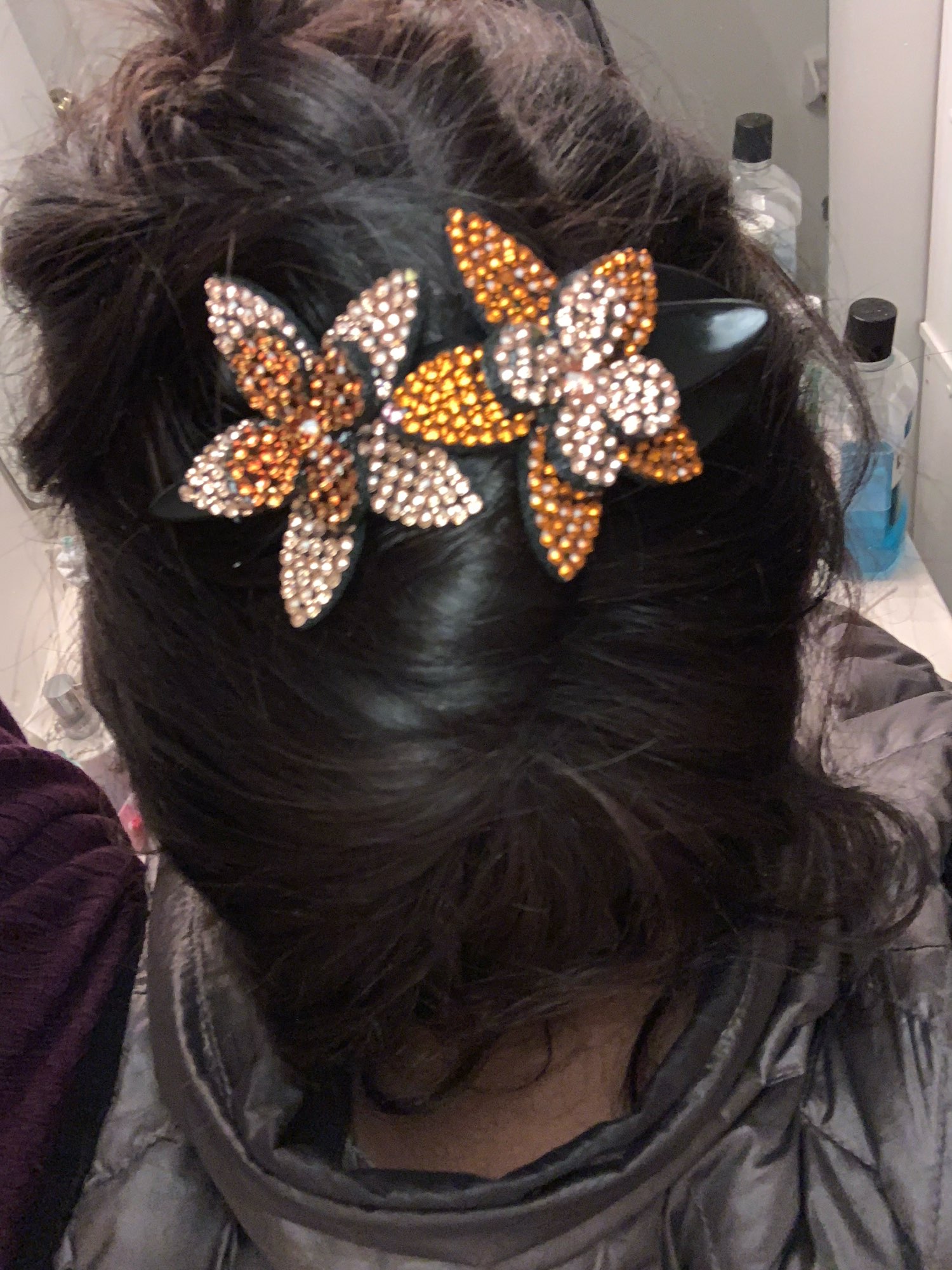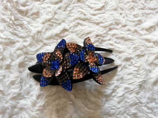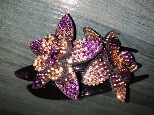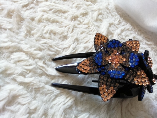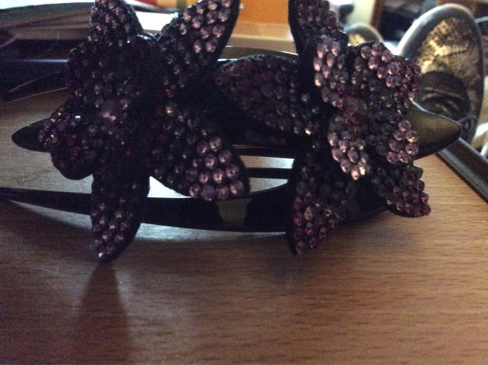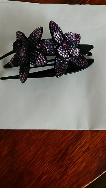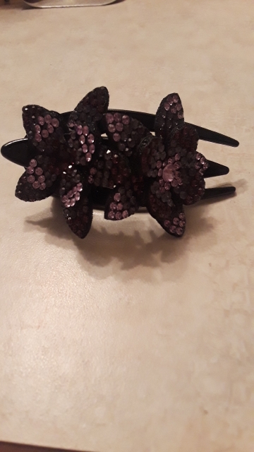 A double flower hair clip. I love it and I am very happy with it. It stays well in my hair.