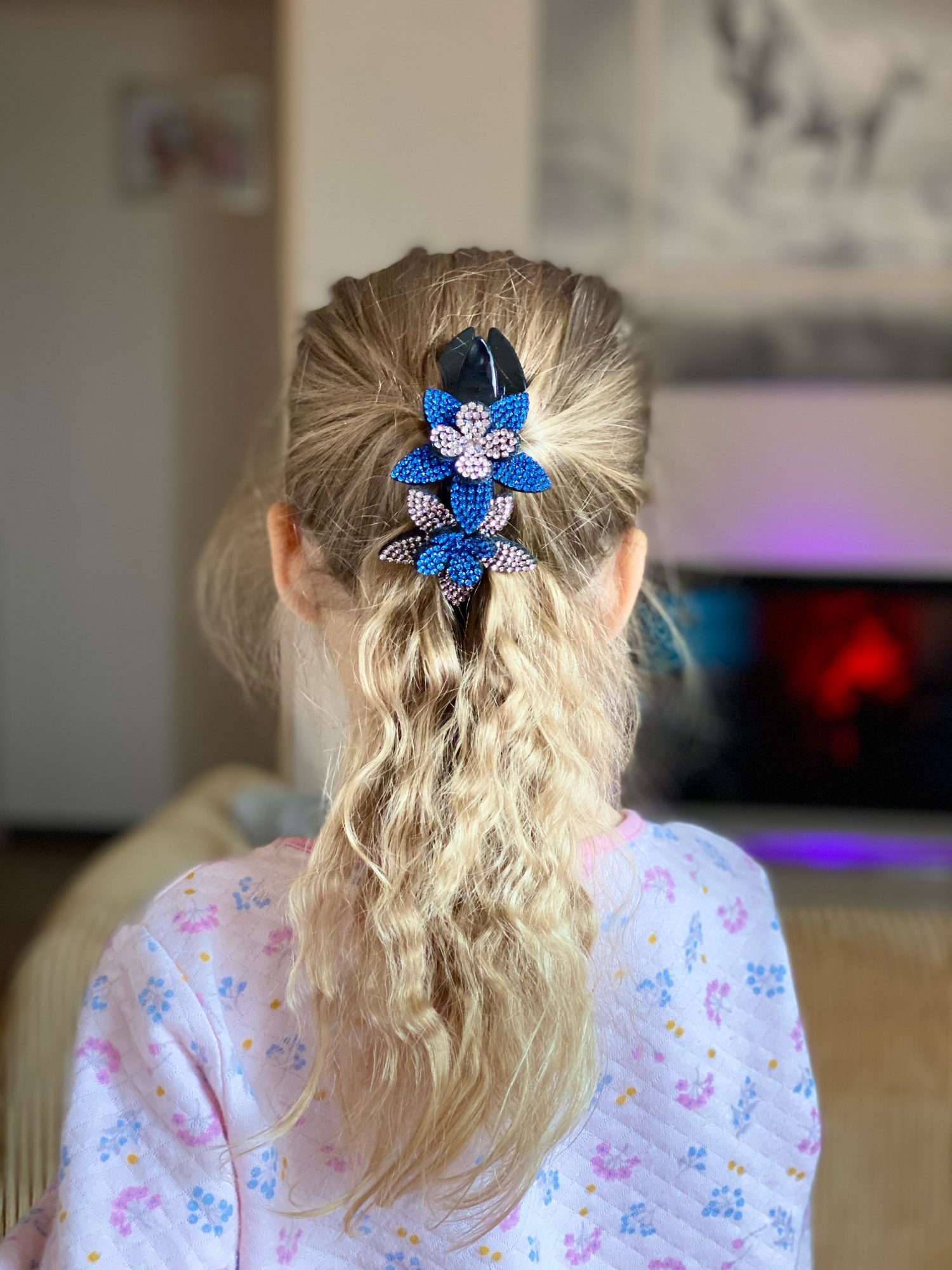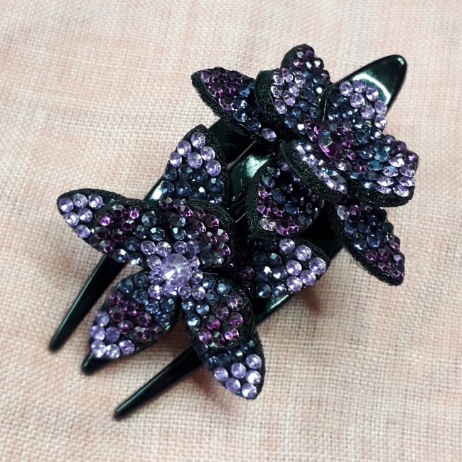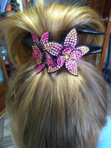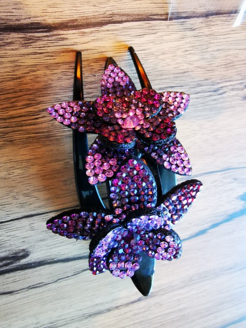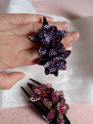 Beautiful hairpin with two flowers, large 9 cm, strong, high quality.