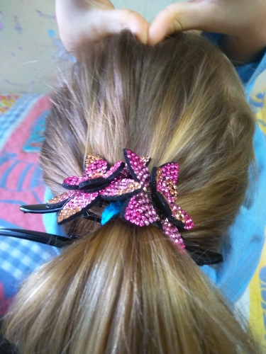 Hairpin went for a long time, two months. On the hair does not hold well, only on the tail with an elastic band.