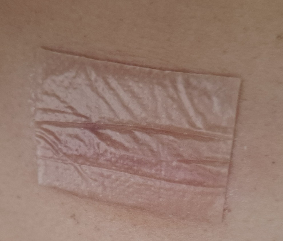 Press scar sheet gently on to the scar area.