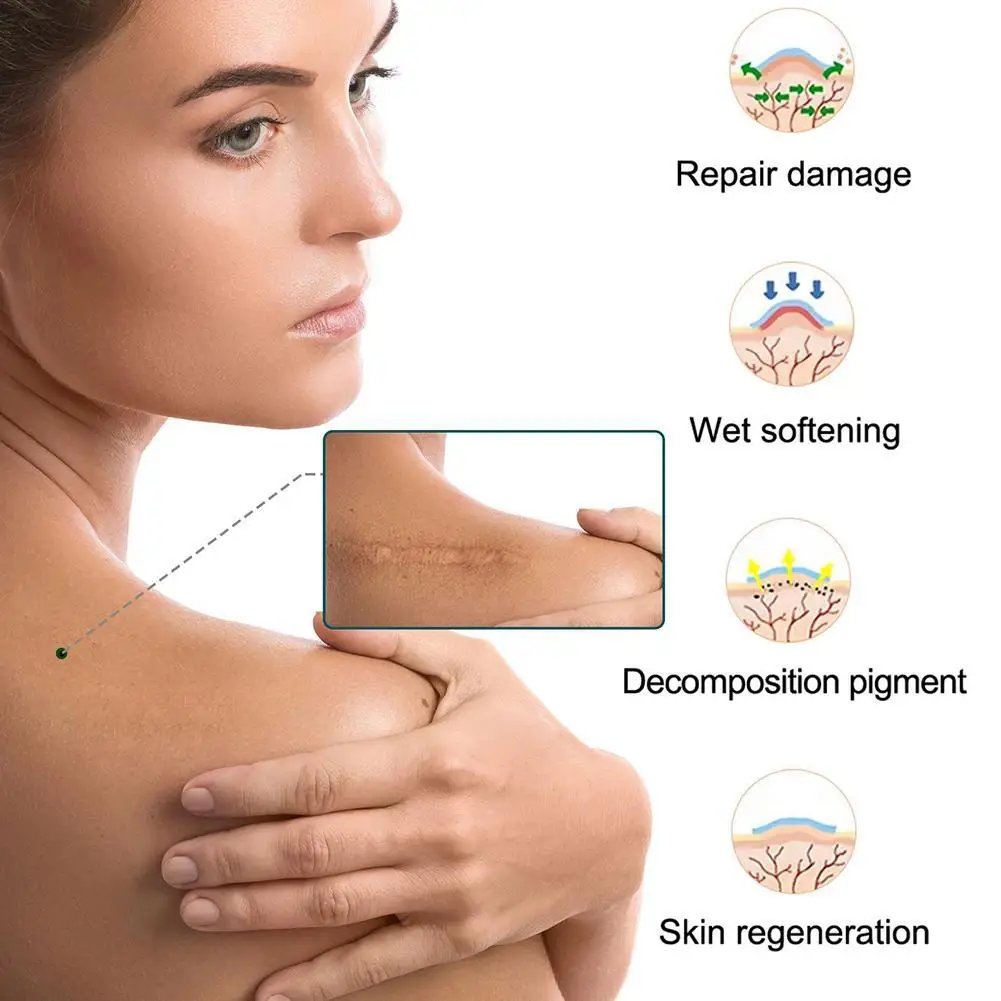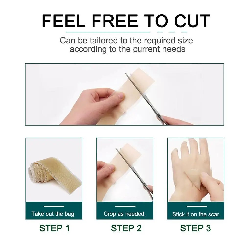 Gel scar tape designed for accelerated scar tissue healing for post treatment or recovery from any wound that has left scarring.Made from high-quality, hypoallergenic silicone and adhesive material this scar treatment tape’s extra length, plus its safe, restorative 100% silicone gel, May safely soften, flatten, fade, smooth & reduce scar growth & redness.Noticeable feeling after use Soften & Flatten Scars Improve Discoloration & Texture Suitable for any skin type, won‘t allergies.Very close to skin tone to avoid embarrassment.