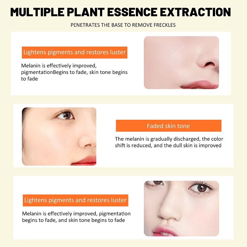 Say goodbye to your unwanted moles within a week with our spot remover gel vitamin C! This is also a cost-effective and effective moles and freckles removal. Arbutin ingredient prevents the production of melanin and inhibits skin inflammation. Glycerol moisturizes the skin and prevents pigment from accumulating on the surface of the skin, moisturizing and firming skin. And vitamin C formula is gentle for all skin types. Unlike most other treatment methods, it targets your freckles or moles and removes them for good, also brightening and whites your skin. This product is safe for these skin types: dry, oily, combination, and normal. In addition to helping target the appearance of dark spots directly, Vitamin C can help give your skin that much-sought-after overall radiance. Buy now!