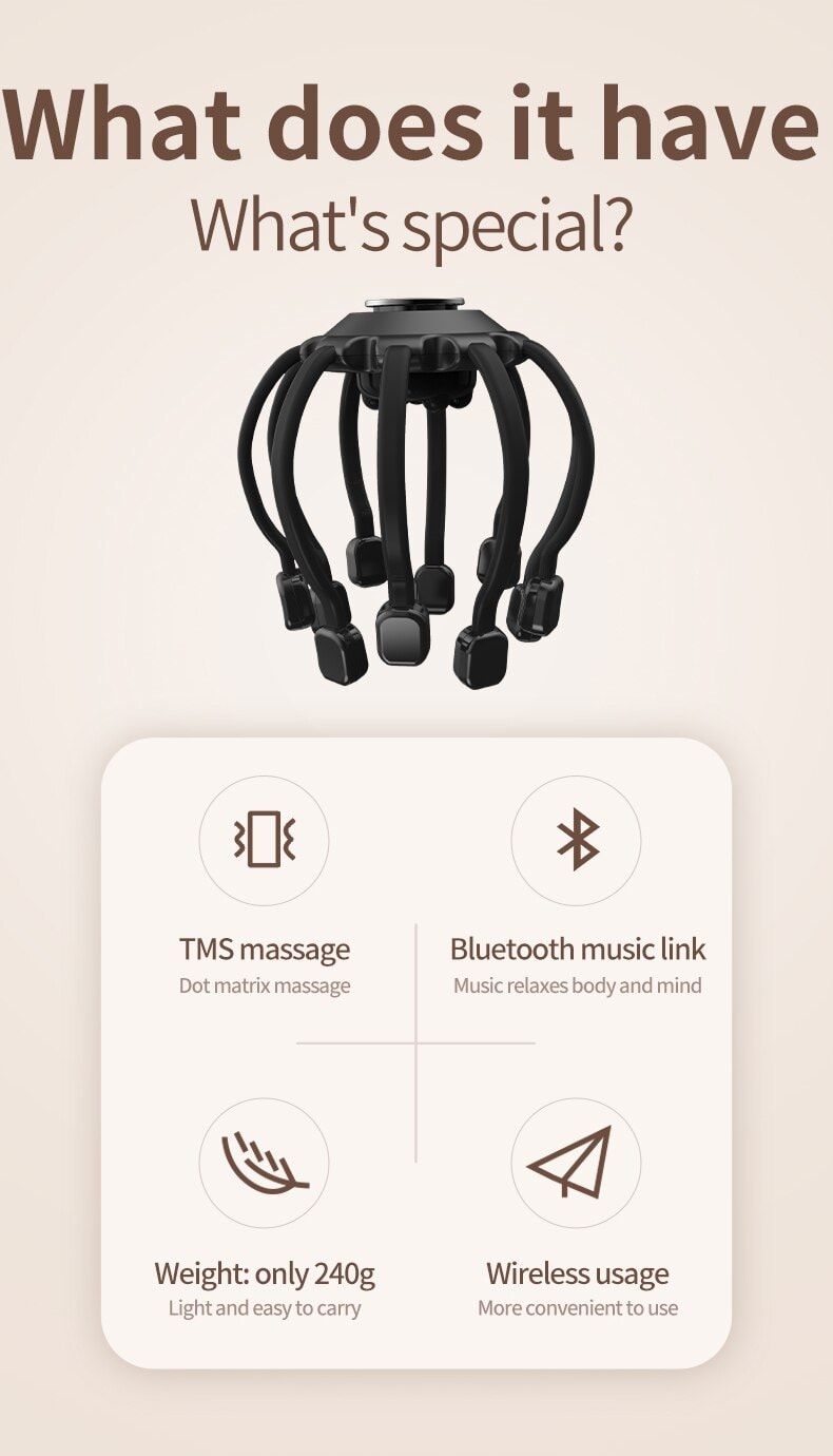 There are many massage points on the top to massage the head in all directions. And with independent Bluetooth music playback function, a new experience
