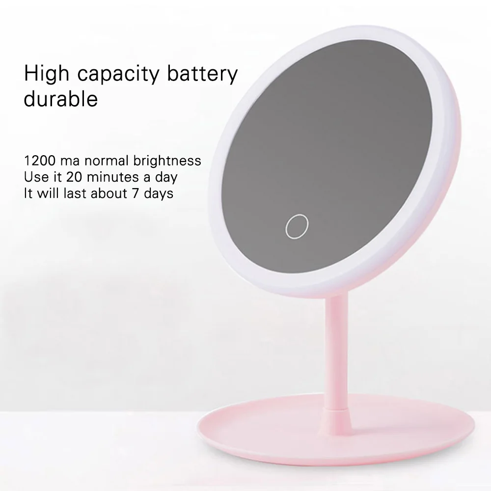 Nice mirror! Lights up the entire room at full darkness. Bought with 3 kinds of color. With long press, the light is adjustable