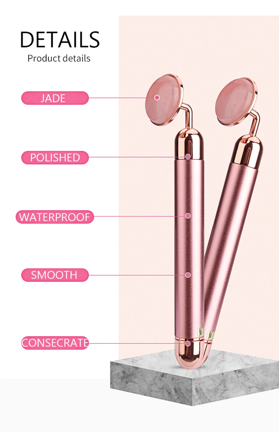 Designed with the same natural properties of genuine rose quartz that is perfectly combined with a beautifying power of vibrating massage. Keep using it every day, your skin would be becoming smoother and smoother. It has an obvious effect to anti wrinkle and anti aging.